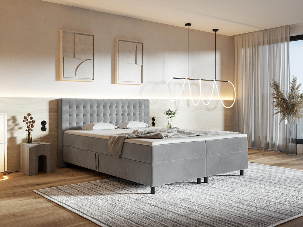 Fiind un pat continental, este format din mai multe straturi, o bază integrată, salteaua propriu-zisă și un topper opțional, asigurându-ți un nivel ridicat de confort și ergonomie.