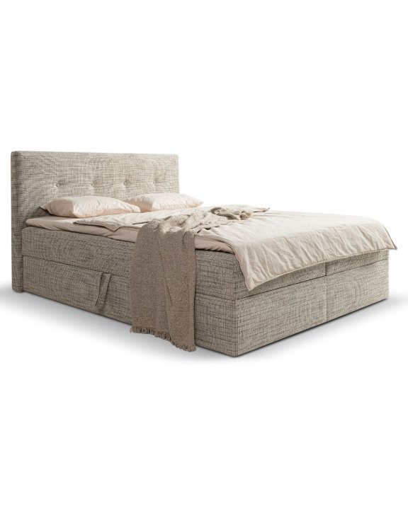 Patul continental cu spații de depozitare Sara de la Pionier este o alegere modernă și elegantă pentru orice dormitor, combinând confortul cu funcționalitatea