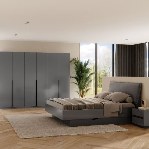 Fabricată din PAL laminat de înaltă calitate, piesa surprinde printr-un finisaj mat contemporan în nuanțe profunde de antracit și grafit, o paletă cromatică sofisticată și mereu actuală.