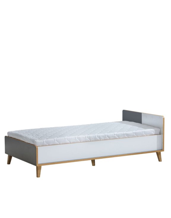 Datorită combinației de alb, de gri și de nuanța stejarului natural, patul se potrivește cu ușurință în majoritatea amenajărilor interioare moderne.