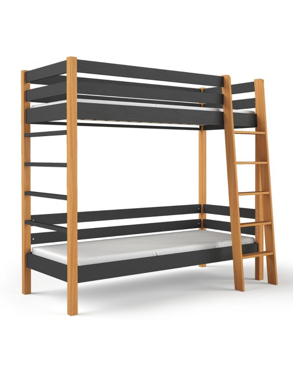 Patul supraetajat Zuza (80x190 cm) de la Dolmar este completarea ideală a dormitoarelor mici ocupate de doi copii, adolescenți sau tineri.