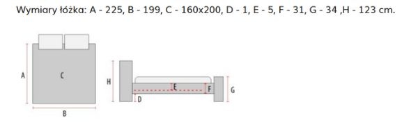 Patul are dimensiuni generoase, de 225×199 cm, pentru un somn odihnitor. Acesta se potrivește cu o saltea de 160×200 cm.