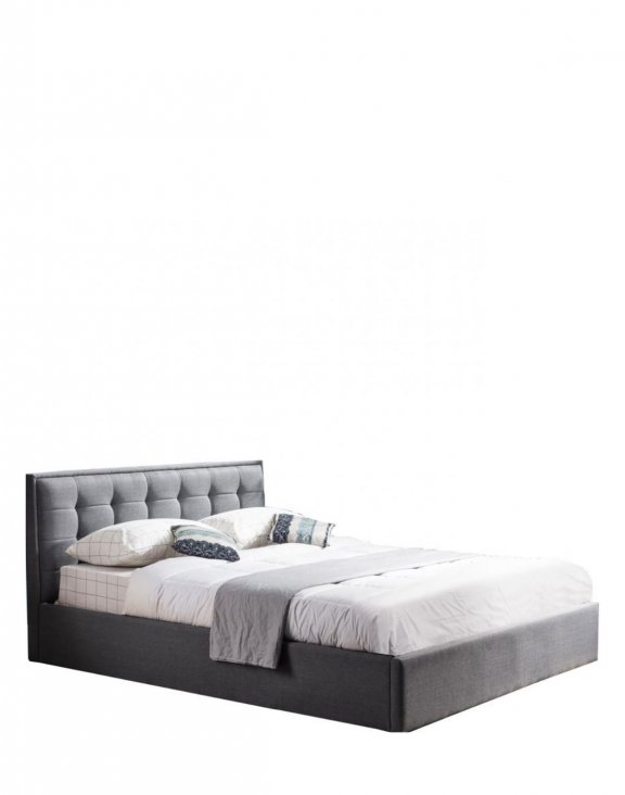 Cadrul este tapițat cu o țesătură plăcută la atingere de culoare cenușie, care se va asorta cu o varietate de amenajări interioare.