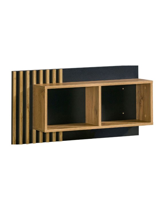 Raftul suspendat dispune de două compartimente deschise, fiind o soluție ideală de depozitare și expunere a diverselor obiecte, precum cărțile sau decorațiunile.