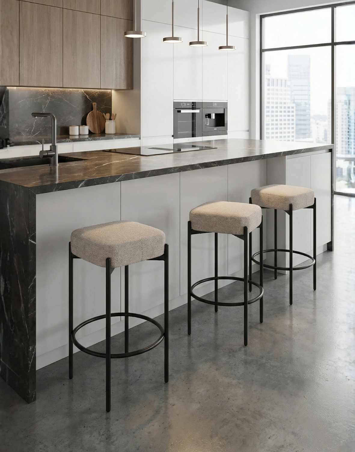 Șezutul dens și moale îți asigură confortul necesar pentru a sta confortabil, chiar și pentru perioade lungi de timp, la insula din bucătărie sau la bar.