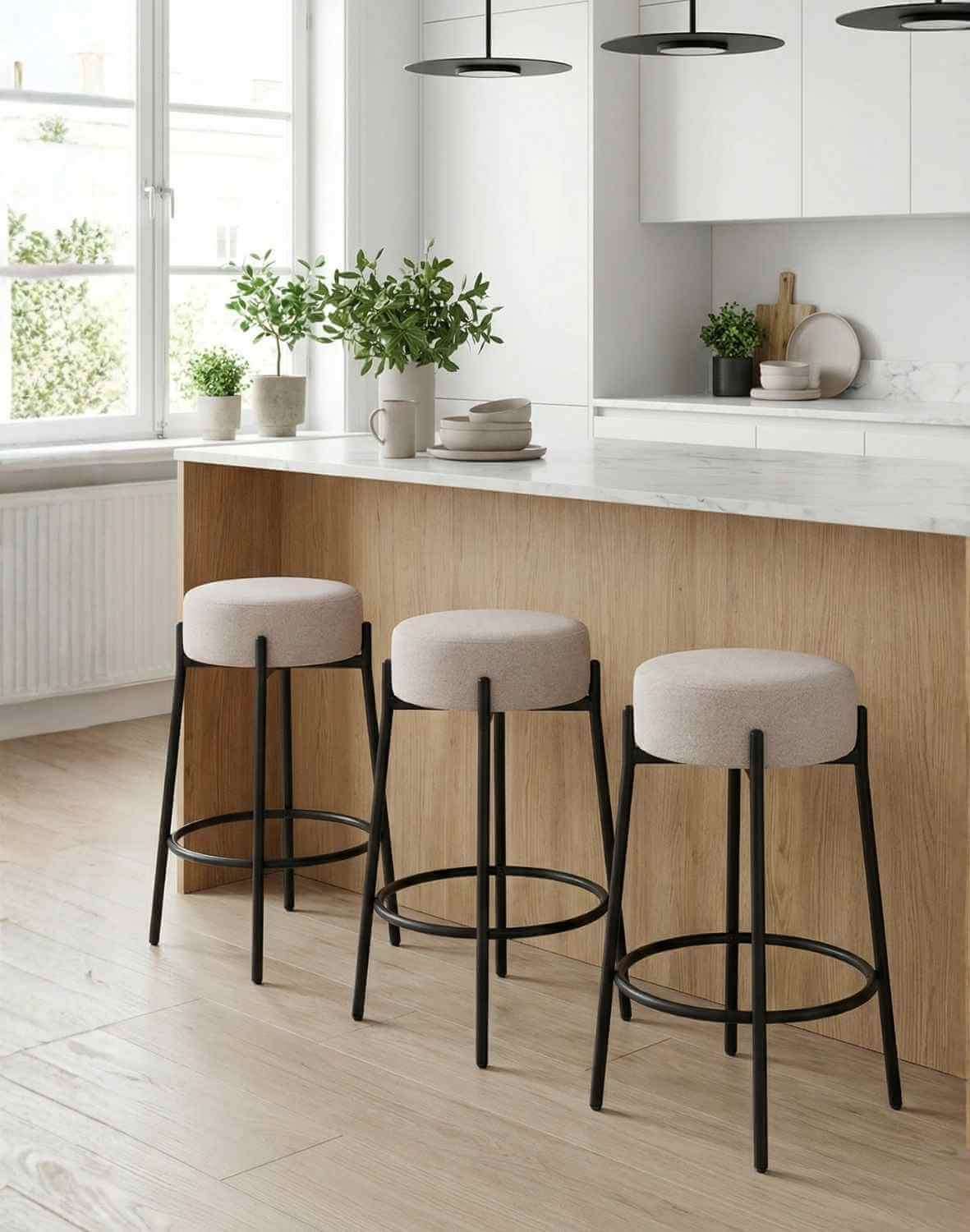 Scaunul de bar Holly este disponibil în bej, potrivindu-se cu diferite designuri interioare.