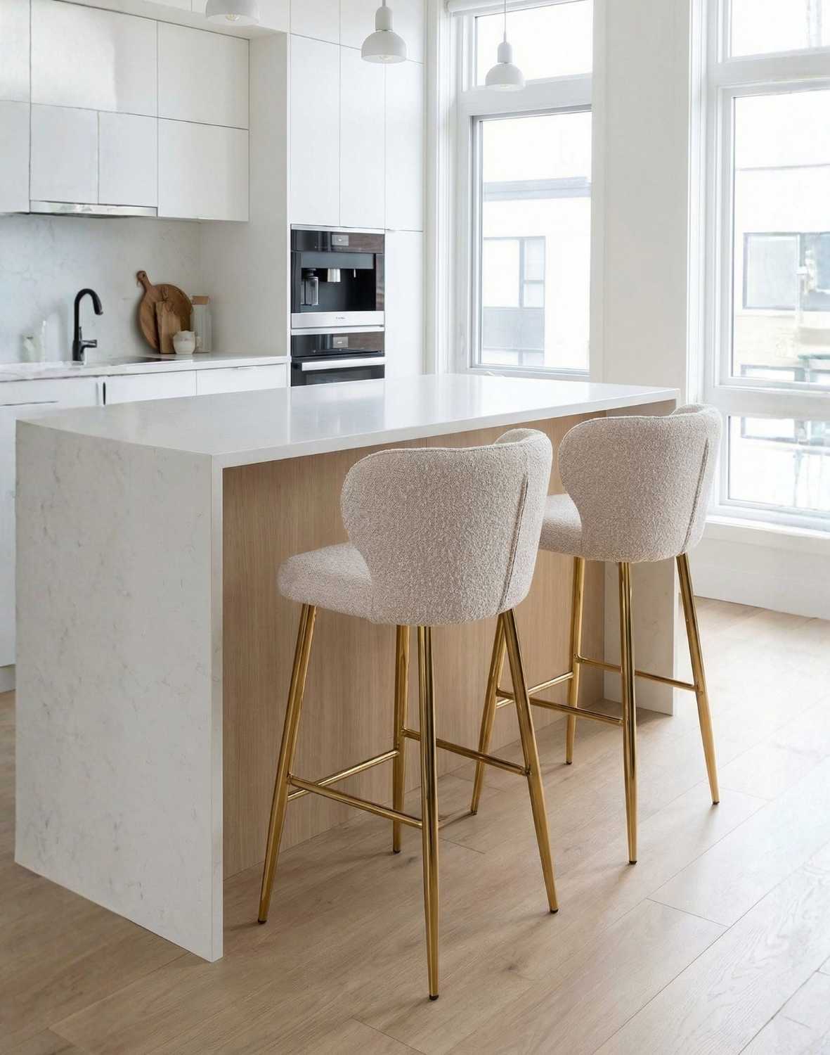 Scaunul de bar Meg de la Avida Design este o piesă de mobilier modernă și elegantă, caracterizată de picioarele aurii și de forma tip scoică.