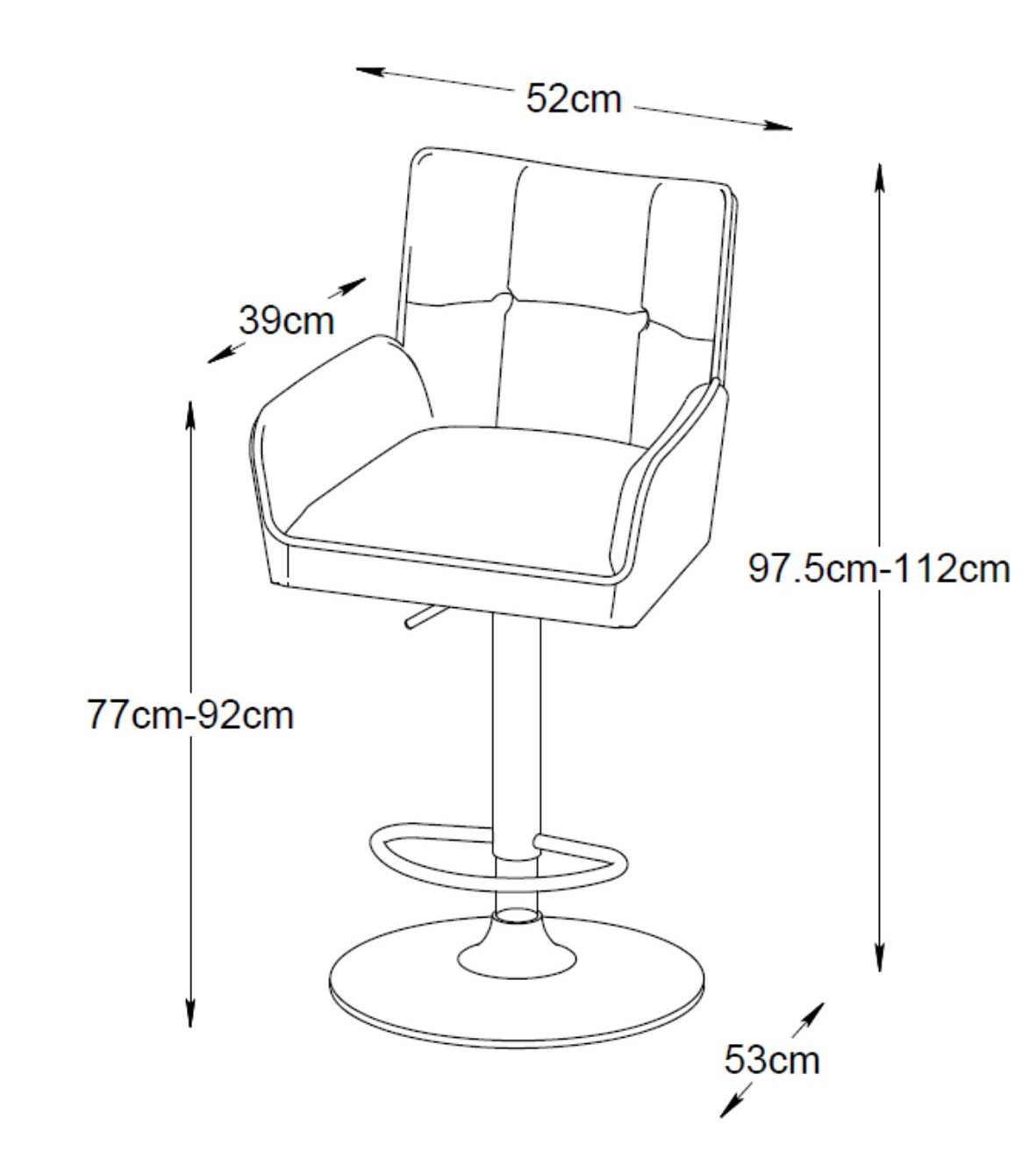 Înălțimea scaunului este reglabilă - de la 98,5 cm la 113,5 cm, astfel încât să poți adapta scaunul cu ușurință la diferite înălțimi ale blaturilor de masă.