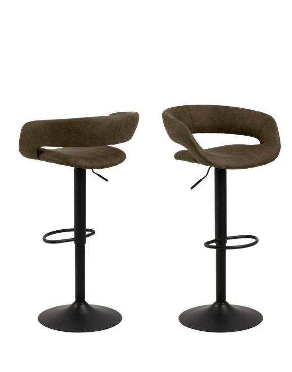 Scaunul de bar rotativ Grace de la Actona combină design-ul modern cu funcționalitatea și confortul. Este disponibil în măsliniu.