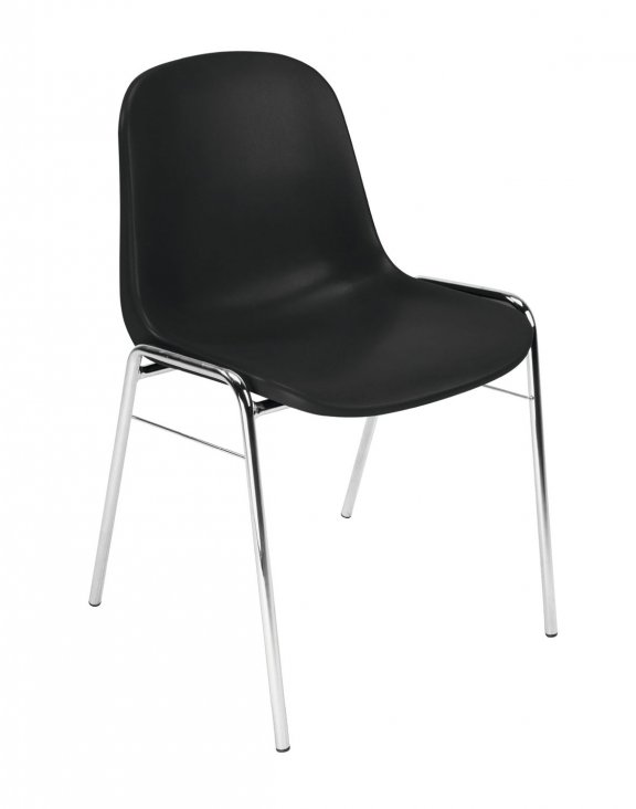 Un scaun ușor pe un cadru metalic cromat, foarte stabil.