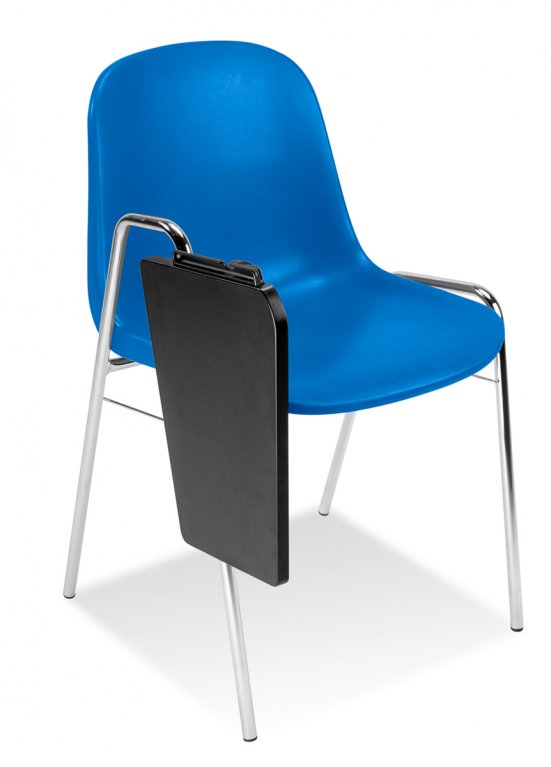 Un scaun din gama Beta ușor, pe un cadru metalic cromat, foarte stabil, dotat cu o măsuță rabatabilă.