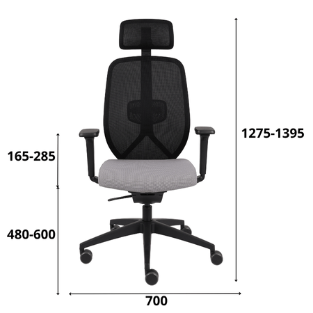 Spătarul și tetiera sunt tapițate într-o plasă mesh respirabilă care menține o temperatură optimă a spatelui, chiar și în cazul unei utilizări prelungite.