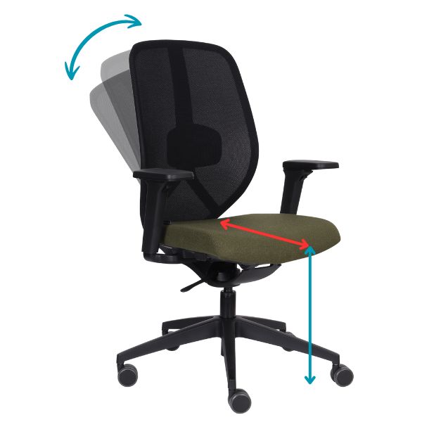 Spătarul are un profil lombar reglabil , care poate fi reglat atât în ceea ce privește înălțimea, cât și adâncimea.