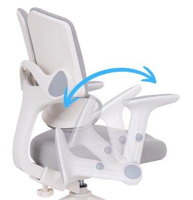 Cotierele sunt reglabile în sus-jos și oferă opțiunea de rabatare completă, pentru ergonomie în utilizare sau pentru glisarea fără probleme a scaunului sub birou atunci când nu este folosit.