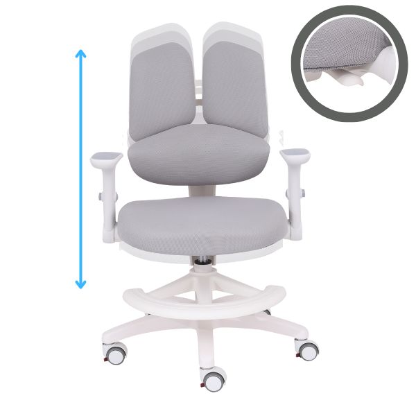 Acest scaun inteligent „crește odată cu copilul”, distanța dintre spătar și șezut putând fi ajustată precis pentru a se alinia perfect cu înălțimea utilizatorului, susținând fiecare etapă a dezvoltării sale.