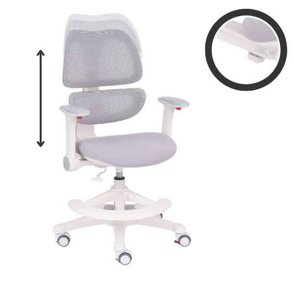 Acest scaun inteligent „crește odată cu copilul”, distanța dintre spătar și șezut putând fi ajustată precis pentru a se alinia perfect cu înălțimea utilizatorului, susținând fiecare etapă a dezvoltării sale.