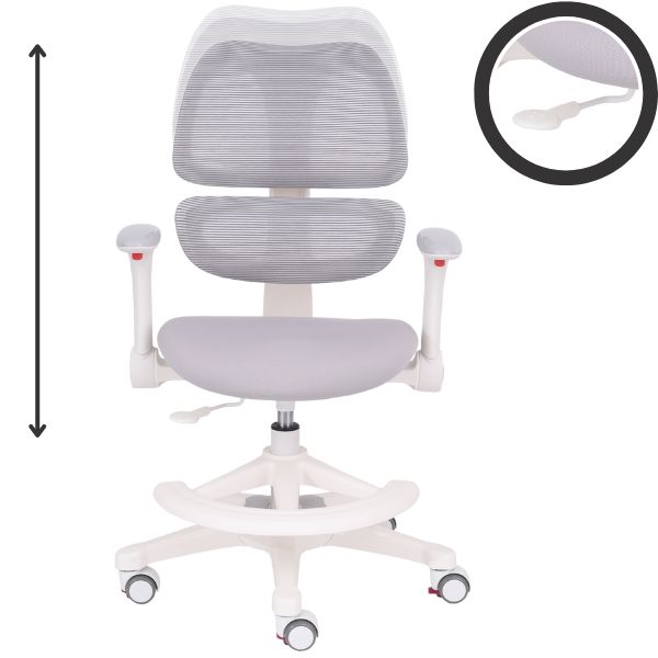 Suportul pentru picioare inclus oferă poate fi reglat pe înălțime și în unghi pentru a oferi un sprijin adecvat, indiferent de înălțimea copilului.