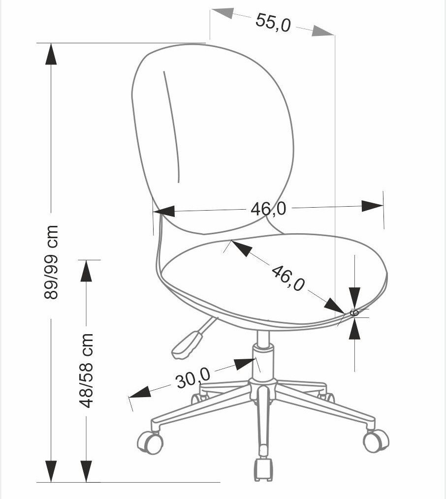 Modelul permite reglarea ușoară a înălțimii șezutului (48-58 cm) și are o funcție de rotire, ceea ce îi îmbunătățește gradul de ergonomie și facilitează adaptarea sa la diferite înălțimi ale micilor utilizatori.