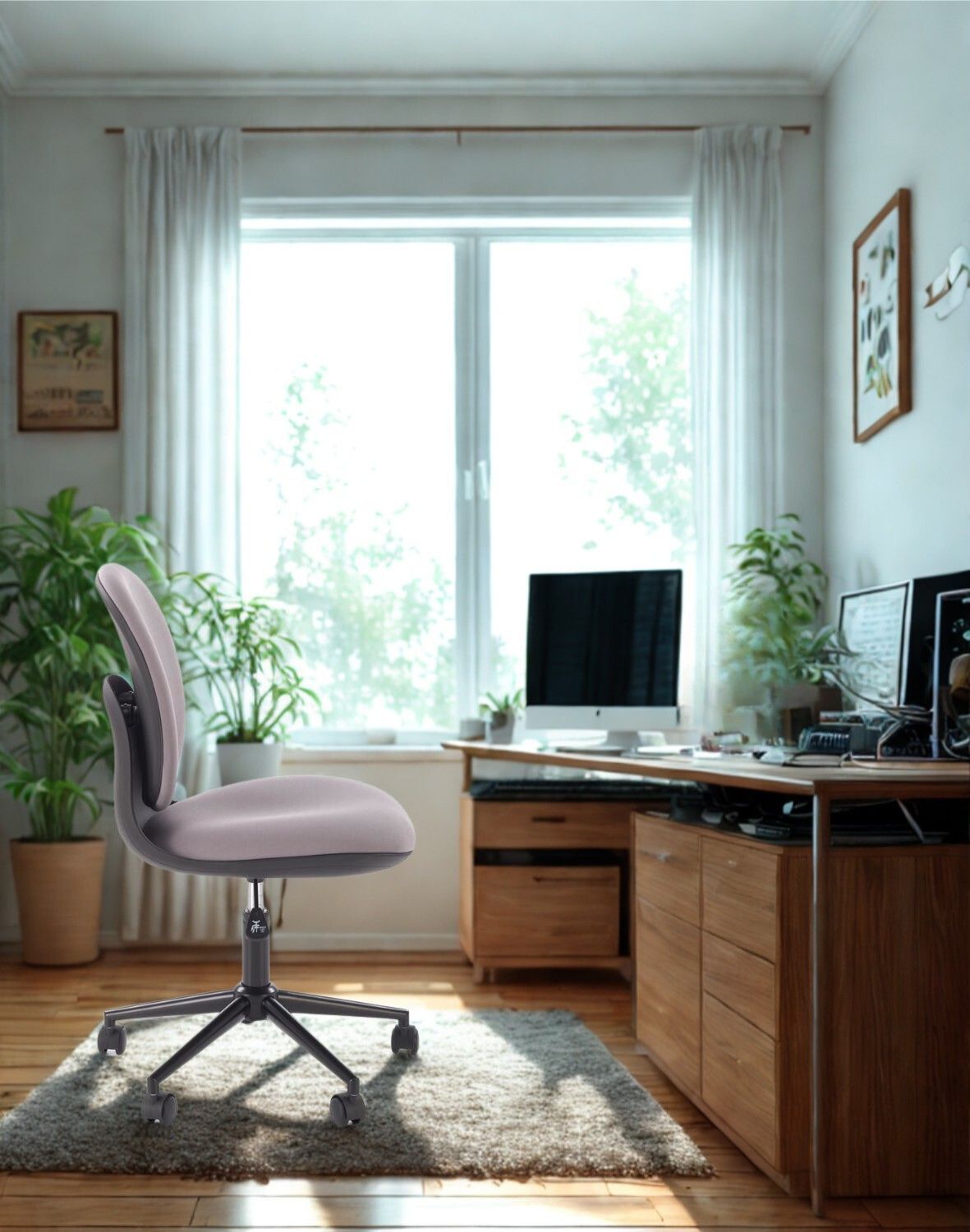 Designul scaunului îi accentuează caracterul minimalist, neavând cotiere sau tetieră, ceea ce îl face potrivit chiar și pentru birourile mai mici.