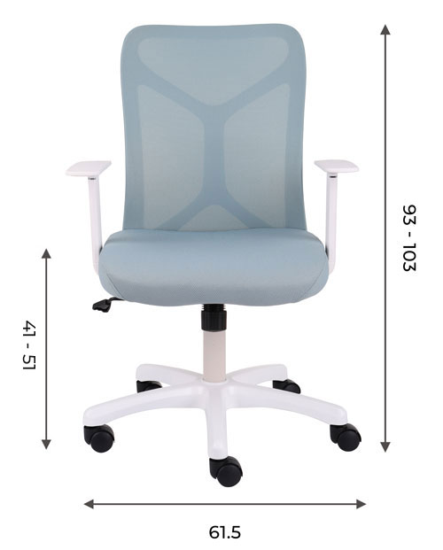 Tapițat cu plasă mesh respirabilă într-o nuanță gri-albăstrui, spătarul asigură o circulație excelentă a aerului, ceea ce este deosebit de important atunci când preteci mult timp pe scaun.