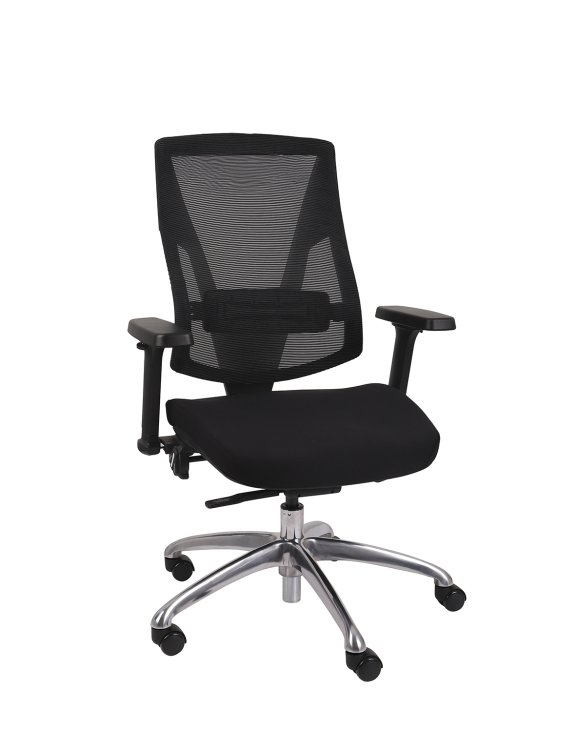 Spătarul scaunului este tapițat cu o plasă mesh durabilă și practică, de culoare neagră. Plasa se adaptează la spatele utilizatorului și asigură, de asemenea, o bună circulație a aerului. Are o rezistență extrem de ridicată la abraziune, de până la 150.000 de cicluri Martindale. De asemenea, este certificată ca fiind ignifugă (țigară, BS EN 1021-1: 2006).