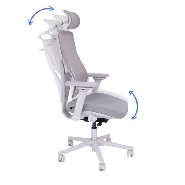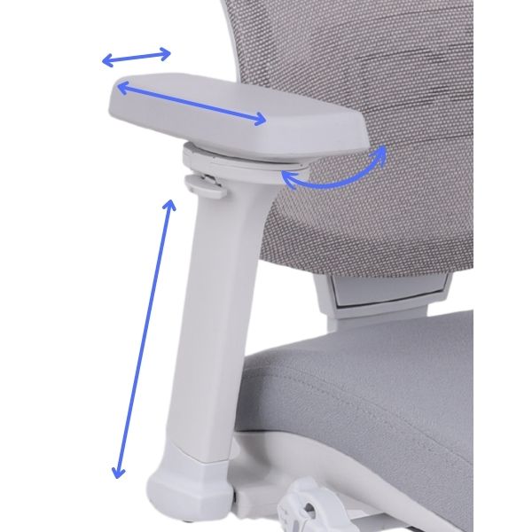 Înălțimea reglabilă a cotierelor 4D (interval de 70 mm) permite o poziție confortabilă și ergonomică a antebrațelor (90° față de trunchi), ceea ce reduce tensiunea musculară a spatelui în timpul șederii prelungite.