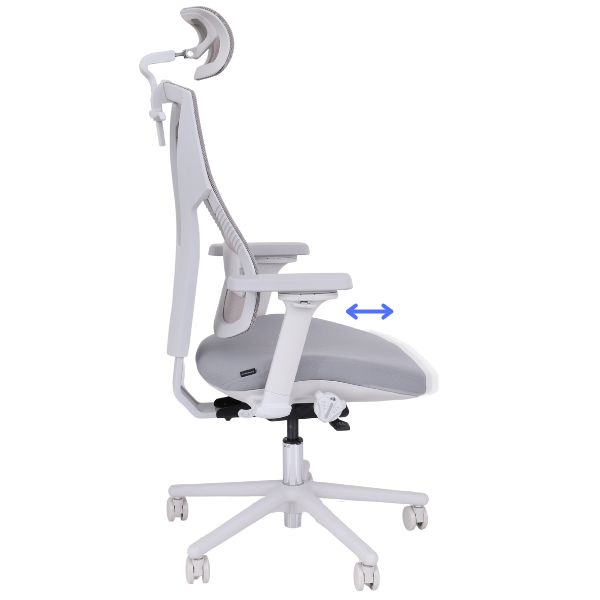 Adâncimea șezutului (distanța dintre șezut și spătar) este ajustabilă, ceea ce face ca funcțiile spătarului să fie accesibile atât pentru utilizatorii de orice înălțime. Cu o singură mișcare a unei manete, poți îndepărta sau apropia șezutul de spătar.