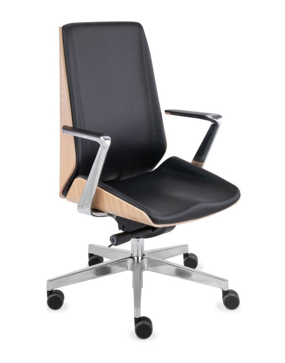 Scaunul de birou Moon Wood AL1 cu furnir de stejar de la Grospol este o combinație excepțională de design și funcționalitate.