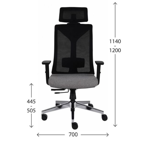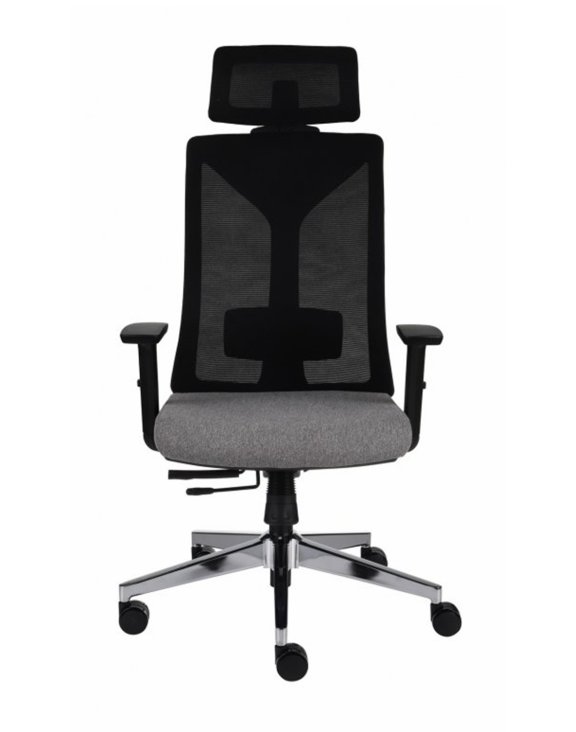 Spătarul și tetiera sunt tapițate cu plasă mesh durabilă de culoare neagră. Se adaptează perfect la spatele utilizatorului și respiră, ceea ce este deosebit de important în lunile de vară.