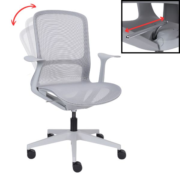 - spătar și șezut cu plasă mesh aerisită, într-o nuanță modernă;