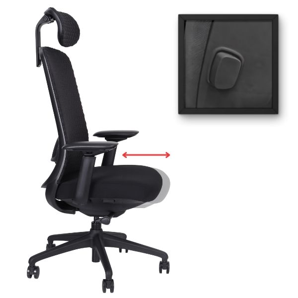 Adâncimea reglabilă a șezutului (folosind butonului situat sub șezut) oferă un sprijin optim pentru coapse și genunchi, fapt esențial pentru menținerea unei poziții corecte.
