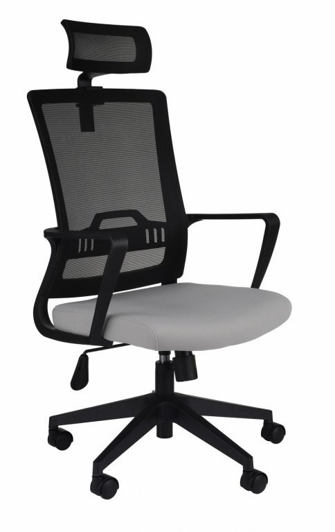 Șezutul este tapițat cu un material textil disponibil gri. Pe de altă parte, spătarul și tetiera sunt tapițate cu plasă mesh neagră.