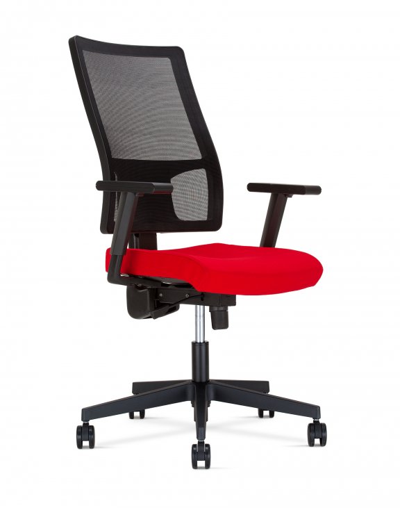 Scaunul de birou Taktik Mesh de la Nowy Styl are un șezut spațios, un spătar tapițat în plasă mesh, cotiere reglabile și un mecanism ergonomic.
