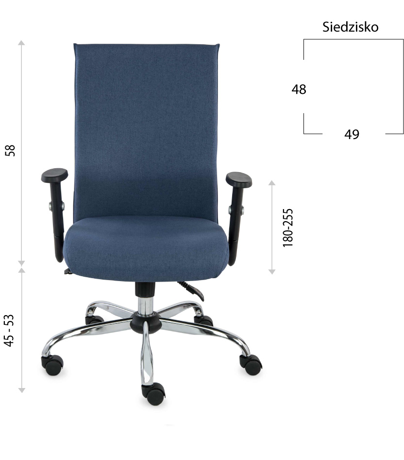 Șezutul și spătarul sunt tapițate în materialul durabil Team, disponibil în albastru.