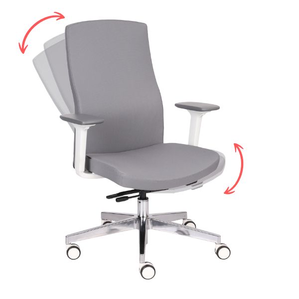 - spătarul se înclină sincronizat cu șezutul (mișcarea spătarului este mai rapidă și mai amplă), oferind în același timp posibilitatea de blocare în 4 trepte, inclusiv în poziția clasică de lucru;