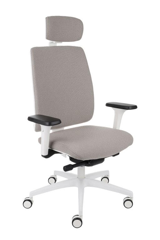 Versiunea WT HD prezentată denotă culoarea albă a elementelor structurale (W), spătarul și șezutul tapițate în materialul textil ales (T) și indică, de asemenea, prezența unei tetiere tapițate în același material textil, cu înălțime și unghi de sprijinire a capului reglabile (HD).