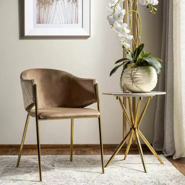 Scaunul Bono bej cu cadru auriu de la Signal se remarcă prin designul rafinat și confortul excepțional pe care îl oferă.