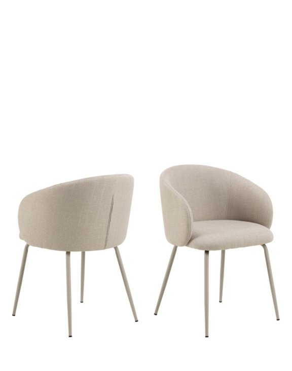 Scaunul de dining Eleanor bej, cu picioare gri, de la Actona, este un element modern pentru bucătăria, sufrageria sau zona de dining de acasă, precum și pentru un restaurant, o cafenea, un pub sau un lobby de hotel.