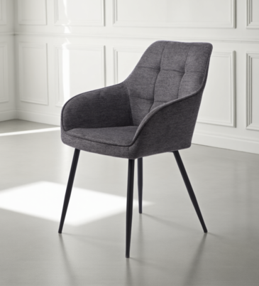 Combinația dintre țesătura texturată și picioarele suple metalice îl face o alegere optimă pentru utilizarea de zi cu zi în sufragerie, dining, birou sau spații comerciale.