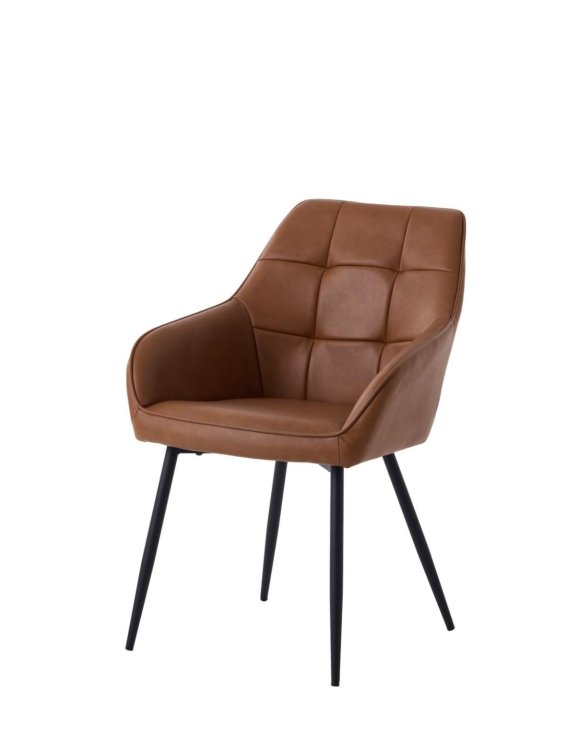 Scaunul de dining Nolan de la Unique este un model elegant și de înaltă calitate, tapițat cu piele ecologică FPU37A de culoare maro (cognac).
