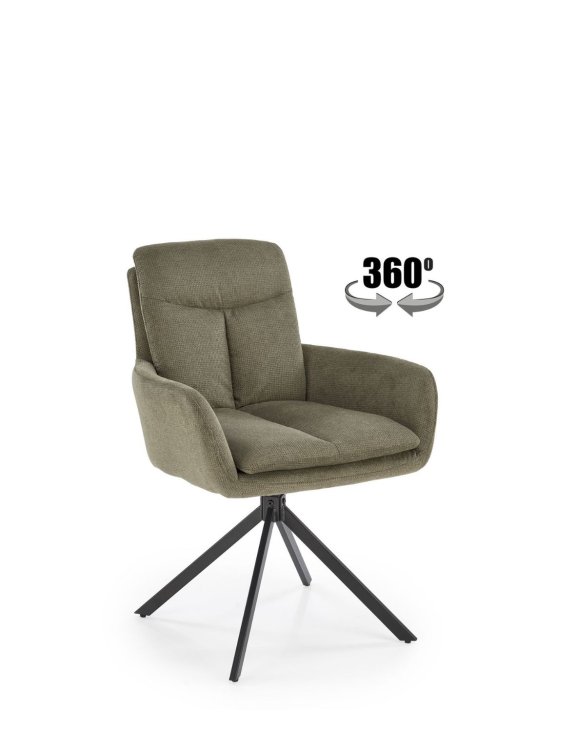 Scaunul de dining pivotant K536 măsliniu de la Halmar este o combinație atractivă între eleganța clasică și funcționalitatea modernă.