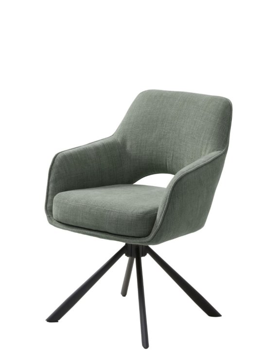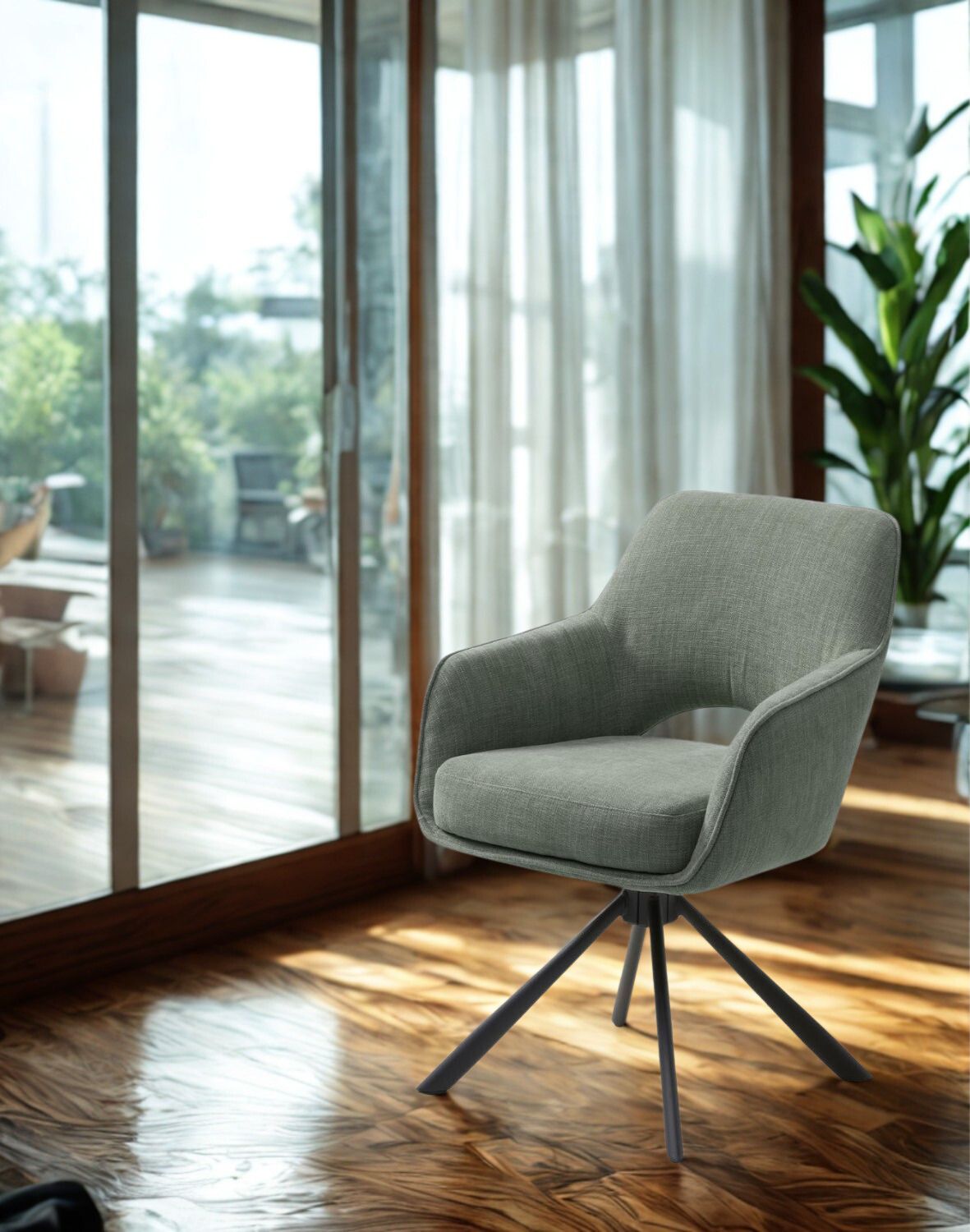 Scaunul de dining pivotant Cowley verde de la Unique este o piesă de mobilier elegantă și funcțională, care combină designul clasic cu soluțiile moderne.