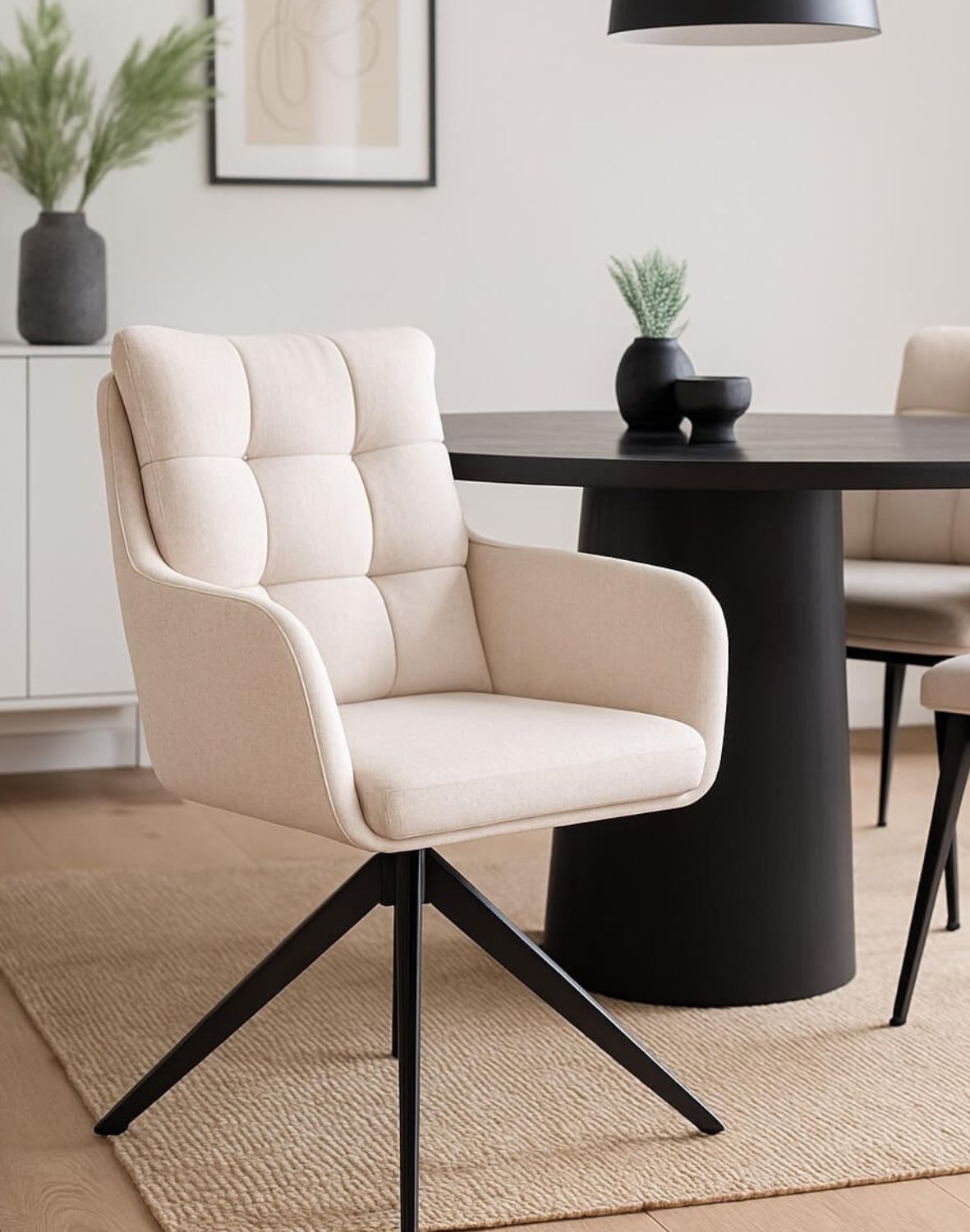 Scaunul de dining pivotant Fioro negru de la Avida Design este o alegere excelentă pentru cei care caută confort și un design elegant într-un singur produs.