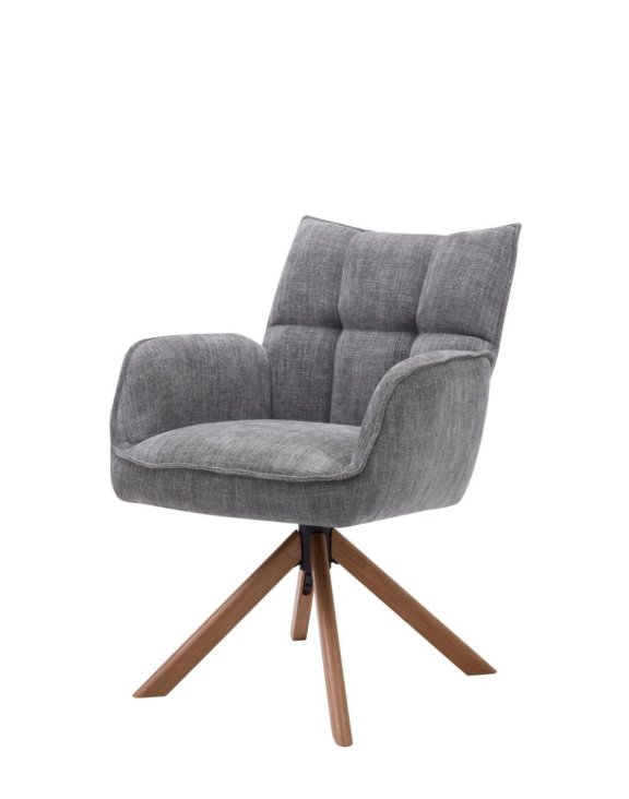 Scaunul de dining pivotant Marilla gri, cu picioare din lemn, de la Unique, este o combinație inovatoare între design elegant și confort în utilizare.