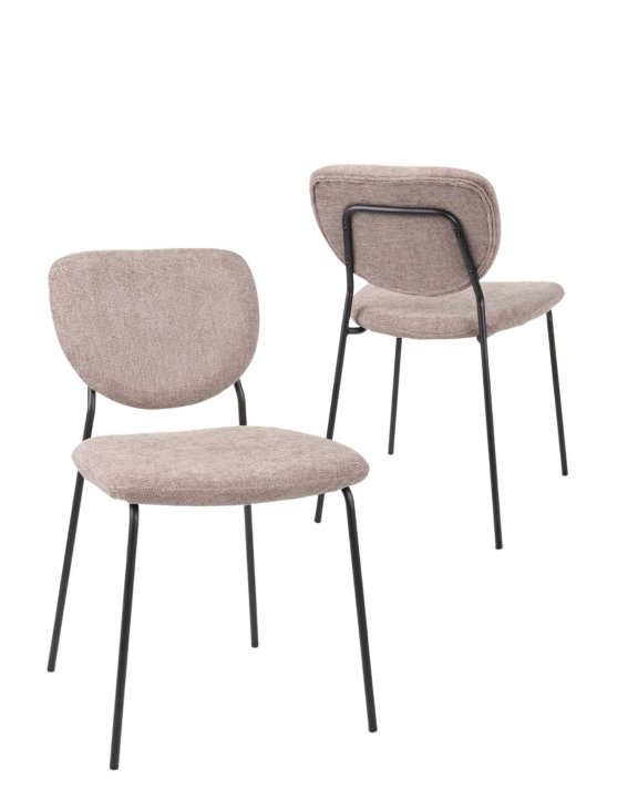 Scaunul este tapițat cu o țesătură moale, structurată, cu un luciu fin, care îi conferă o notă luxuriantă.