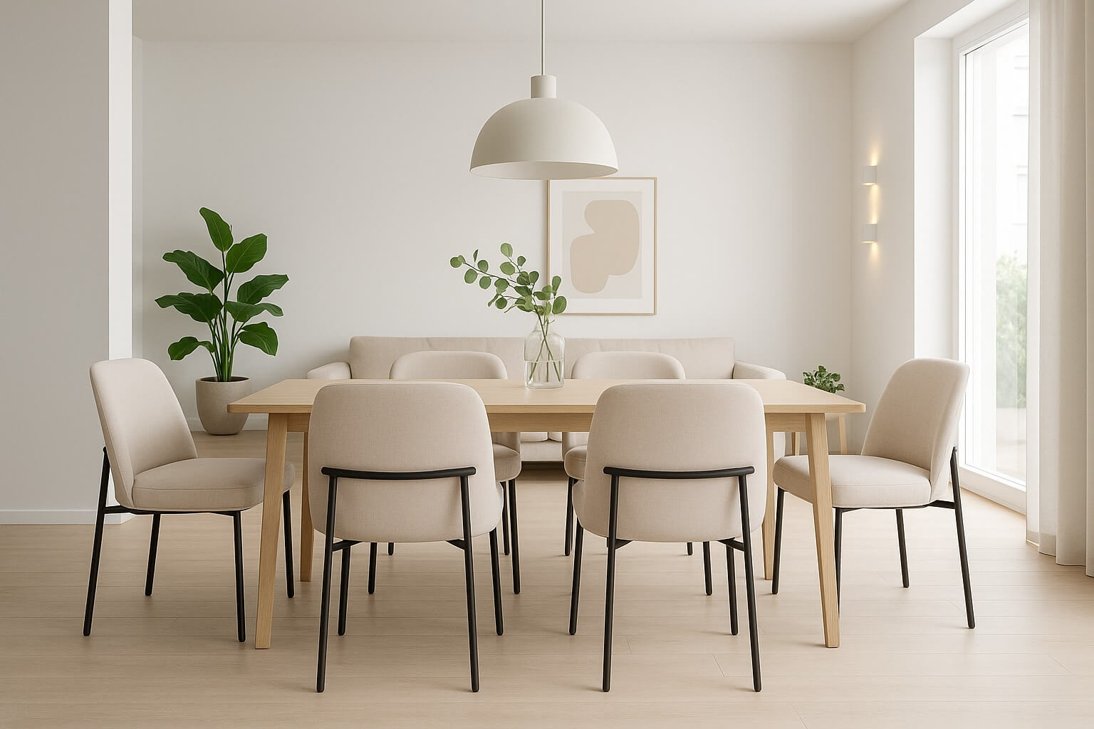 Scaunul de dining Zafiro, cu picioare negre, de la Avida Design, este o piesă de mobilier pentru zona de dining sau living, care combină designul minimalist și confortul în utilizare.