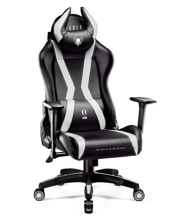 Scaunul de gaming X-Horn 2.0 King în combinația de culori negru și alb oferă o ergonomie sporită.