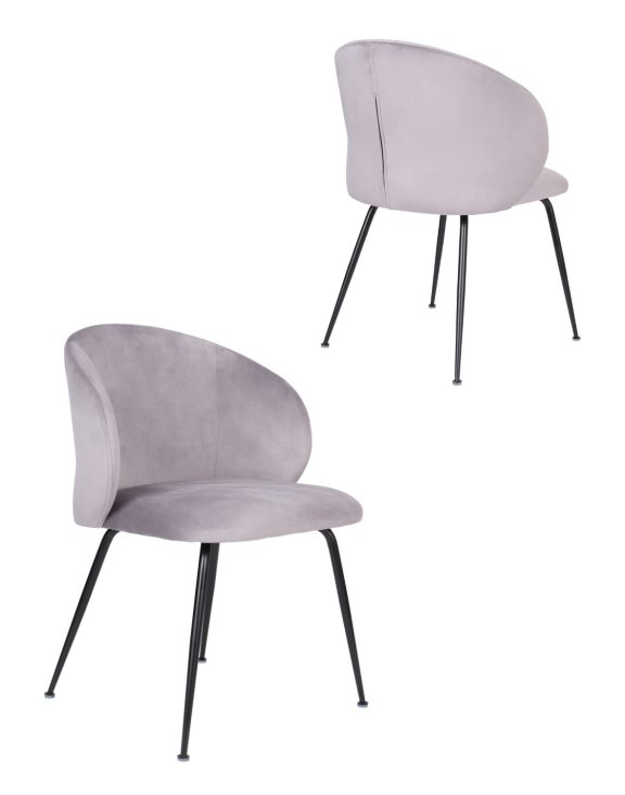 Scaunul este tapițat într-o țesătură de catifea plăcută la atingere, de culoare gri închis.