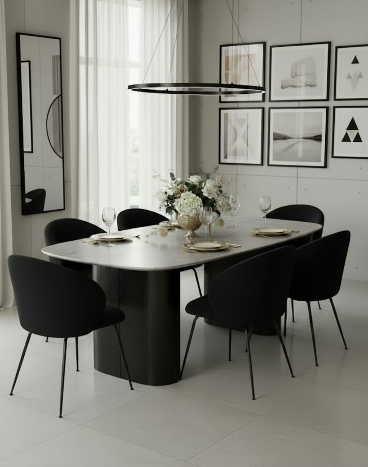 Scaunul de dining Ganta Black de culoare neagră, cu picioare negre, are un șezut spațios și un spătar încăpător, ceea ce îi conferă un grad ridicat de confort pentru a te relaxa în timp ce iei masa.