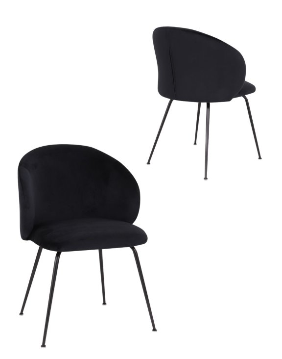 Scaunul este tapițat într-o țesătură de catifea plăcută la atingere, de culoare neagră.
